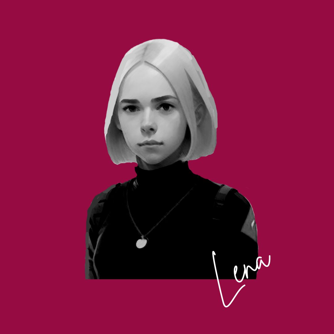 Lena: Beste Freundin von Pia. Beide sind als Mädchen sind zusammen Rennen gefahren - bis Lena ausgestiegen ist, für eine sicherere Karriere. Doch vom Rennsport ist sie nie weggekommen - jetzt ist sie als Fotografin in der F1.